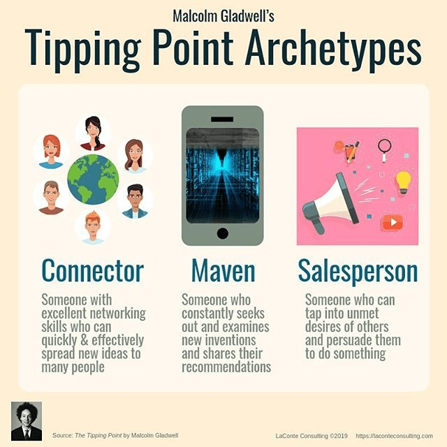 커넥터라는 명칭은 작가 말콤 그래드웰이 본인의 저서 <The Tipping Point> 라는 책에서 처음 대중화 시킨 단어인대요, 다양한 분야에서 아는 사람이 많은 사람, 그리고 사람들과 연결하는 것을 즐기는 사람 즉, 네트워킹을 하는 주체를 말하고 있습니다.