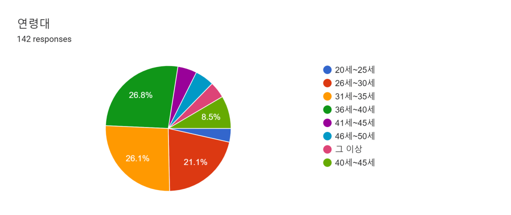 36세~40세가 26.8%로 가장 많았으며 26세에서 40세가 전체 74%를 차지했습니다. 졸업 후 가장 활발하게 일하는 연령대와 맞아 떨어져 보입니다.